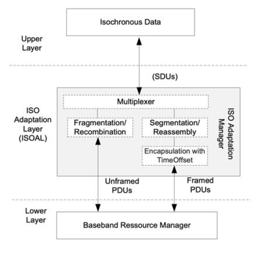 - Lower Layer (PDUs): After being processed by ISOAL, the data becomes Protocol Data Units (PDUs) ready for the Baseband Resource Manager to transmit over the wireless environment.
