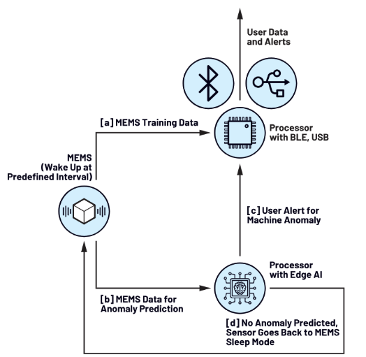 The vibration data is collected using a 3-axis MEMS accelerometer mounted directly on the mechanical structure under monitoring