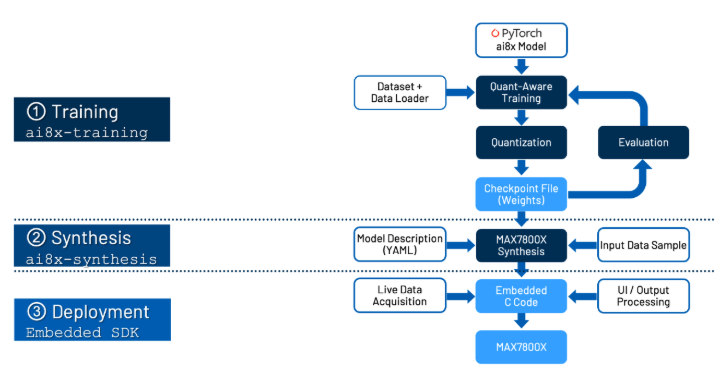 In general, a model is first created on a host PC using conventional toolsets like PyTorch and TensorFlow. This model requires training data that must be saved by the targeted device and transferred to the PC. One subsection of the input becomes the training set and is specifically used for training the model. A further subsection becomes a validation set, which is used to observe how the loss function (a measure of the performance of the network) changes during training.