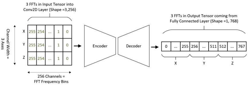 - Input Details: The input consists of 3 axes (X, Y, and Z), where each axis contains 256 frequency bins (FFT data points).