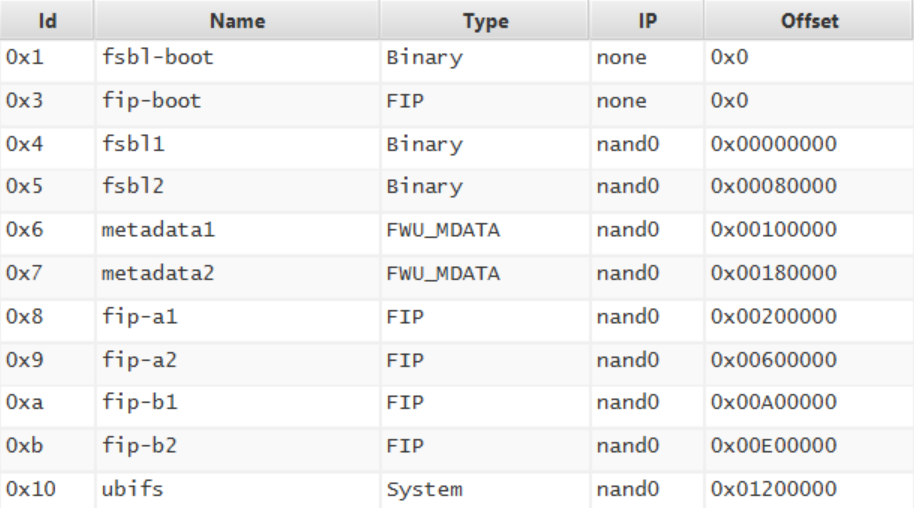 Note: The Offset column must match the Erase Size architecture of the NAND chip you are using.
